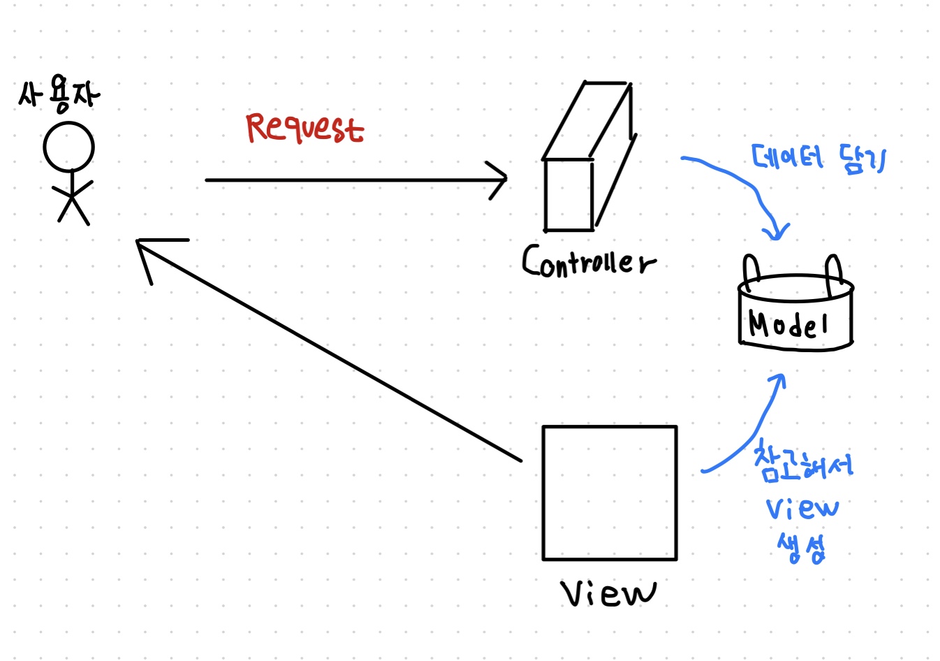 - View는 Model에 담겨있는 데이터만 쏙쏙 골라서 화면에 바인딩해준다!