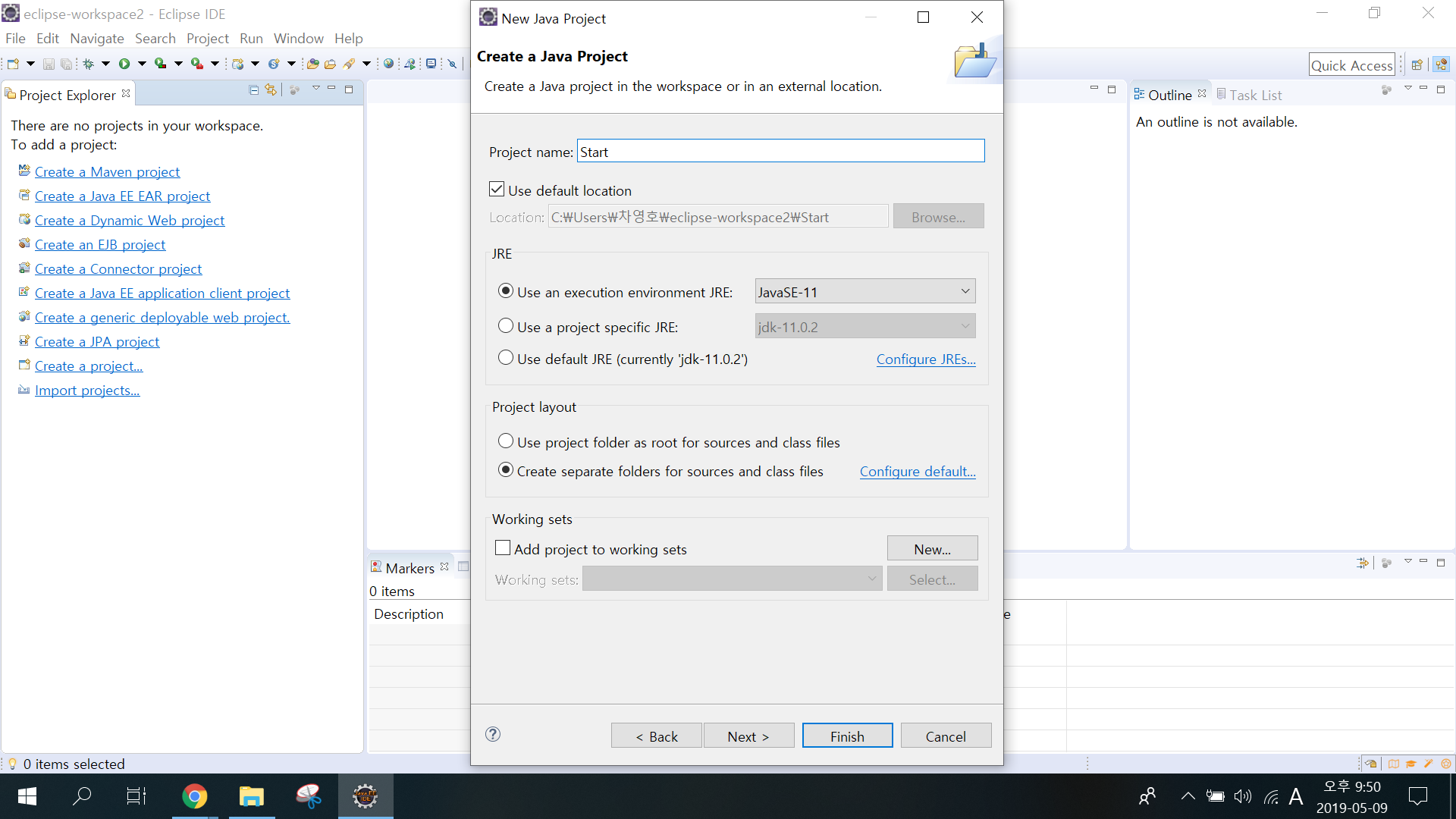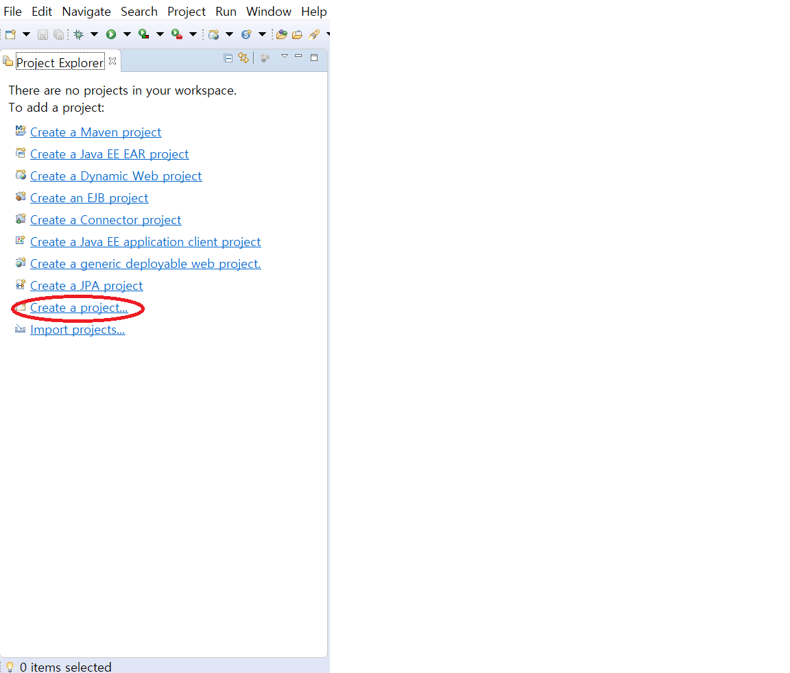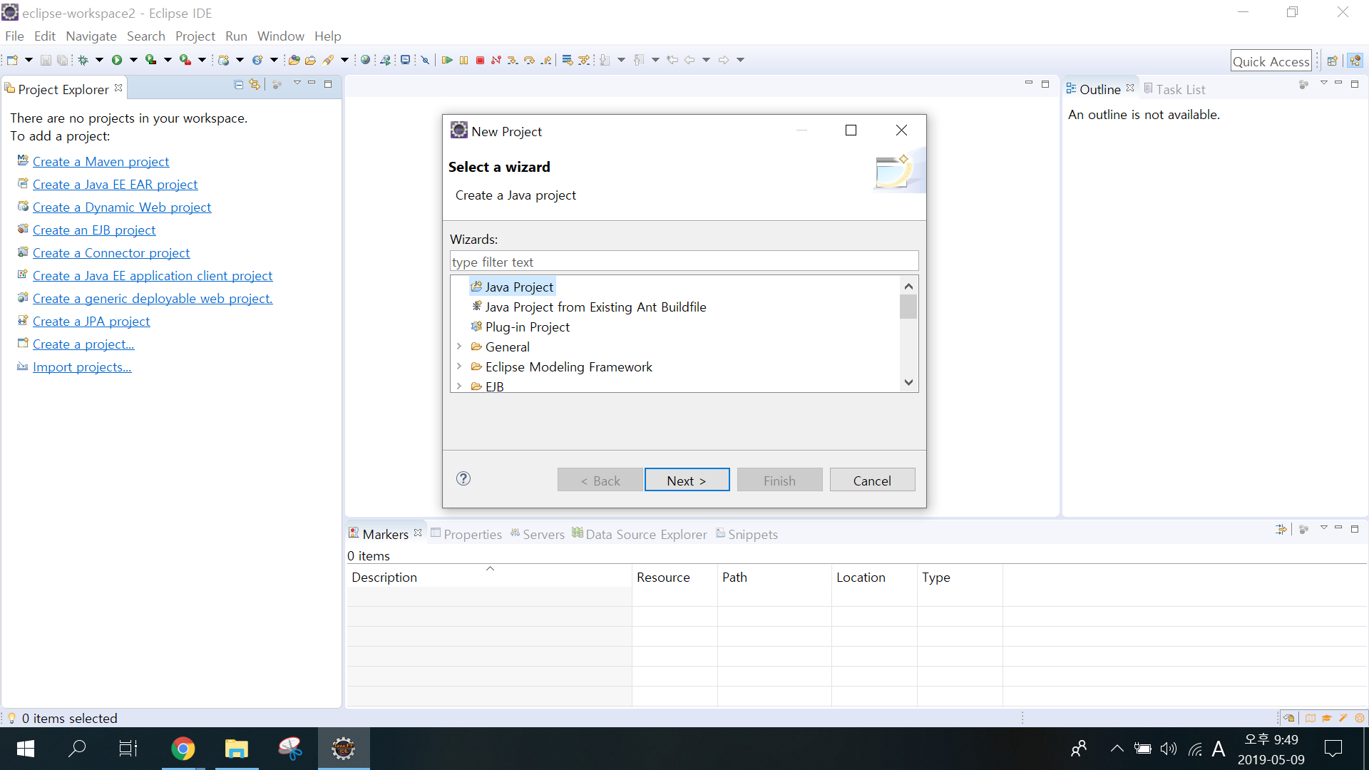 이런 창이 떠요! 이 창으로 말할거같으면 여러가지 기능이 있는 Java Project중에서 무엇을 할거냐~~