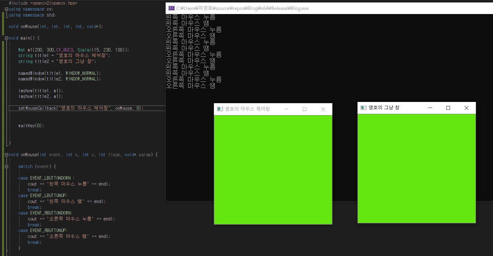 setMouseCallback("영호의 마우스 제어창", onMouse, 0)을 풀어쓰면