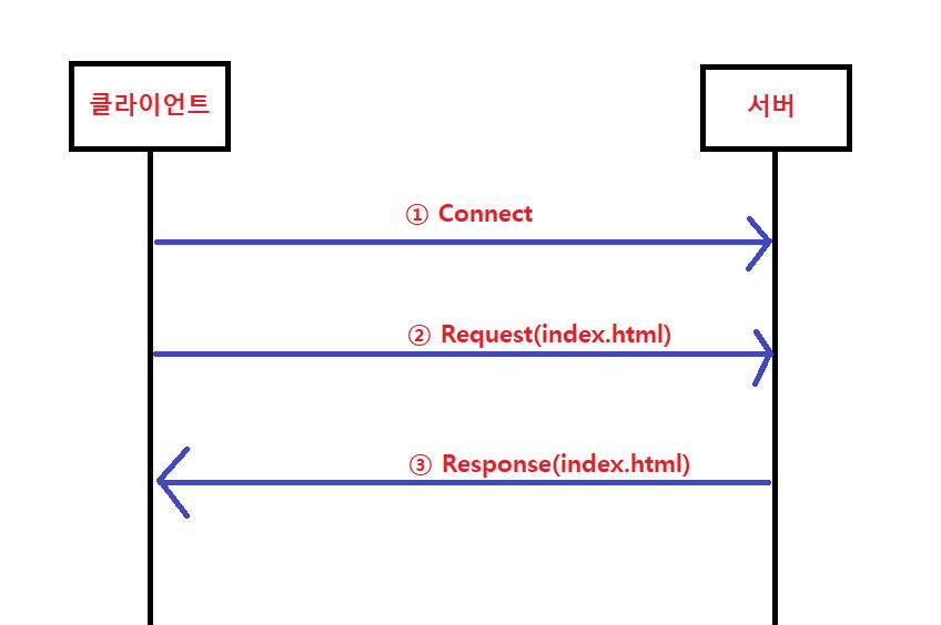 클라이언트가 웹 브라우저를 이용하여 서버에 연결을 요청합니다. 그리고 서버는 클라이언트에 대해 서비스를 준비합니다.