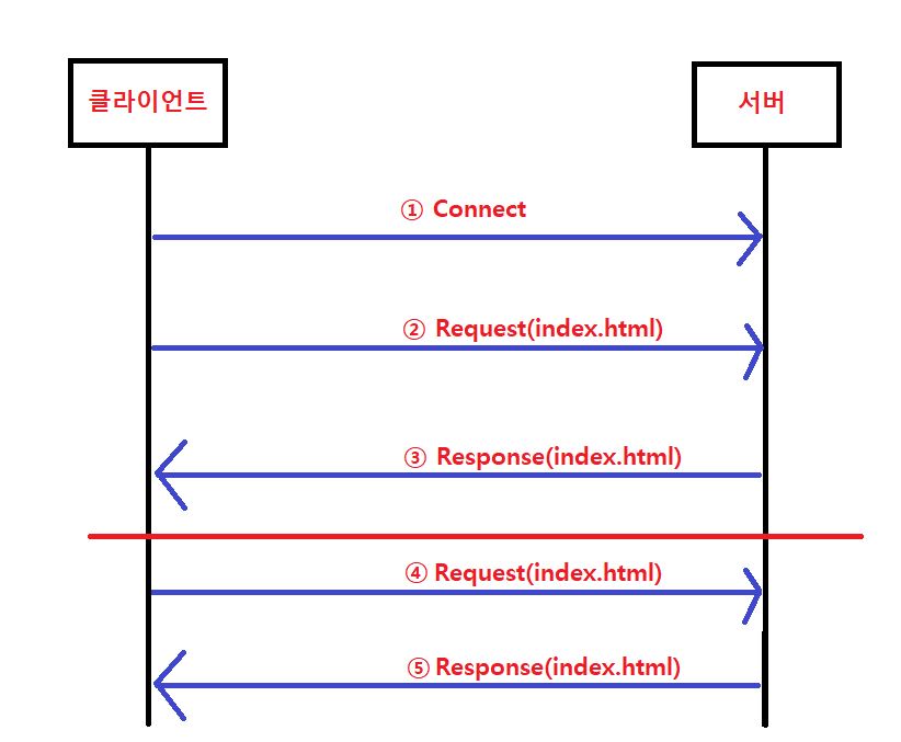 ※ HTTP 또한 윗 내용과 같은 방식으로 연결을 수행합니다. 하지만 매번 내용을 주고받을 때 마다 Connect과정을 거쳐야 하기 때문에 매우 비효율 적이었어요!(0.9 버전)