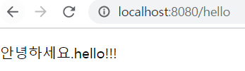 - 이제 실행하고 웹브라우저에서 "localHost:8080/hello"로 접근을 해보자.