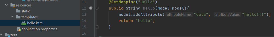 - 매칭이되고 hello.html이 불러와지는데 코드가 없으면 안되니 코드를 넣어주자.
